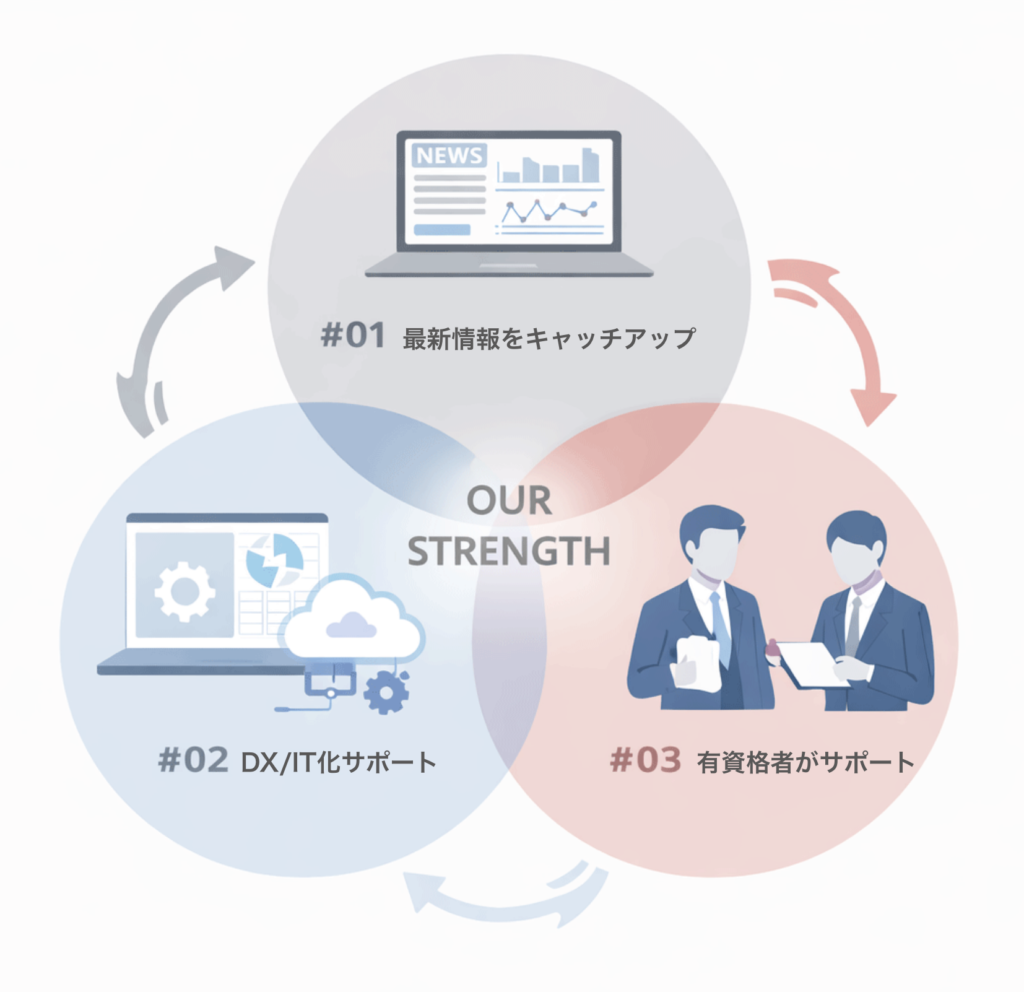 改正情報の提供:毎年アップデートされる会計・税務情報をキャッチアップしお客様の事業に応じた情報を提供しています。